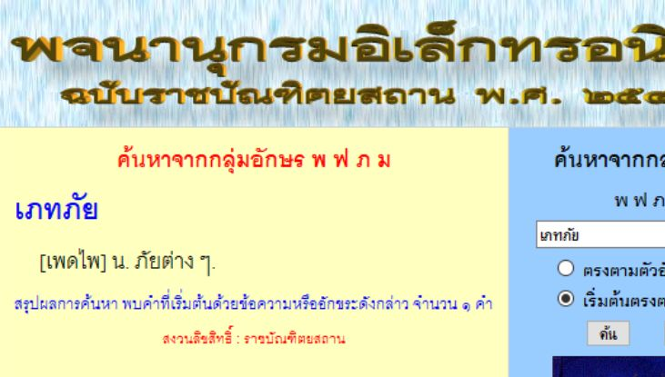 “เภทภัย : (คำนาม) ภัยต่าง ๆ.”